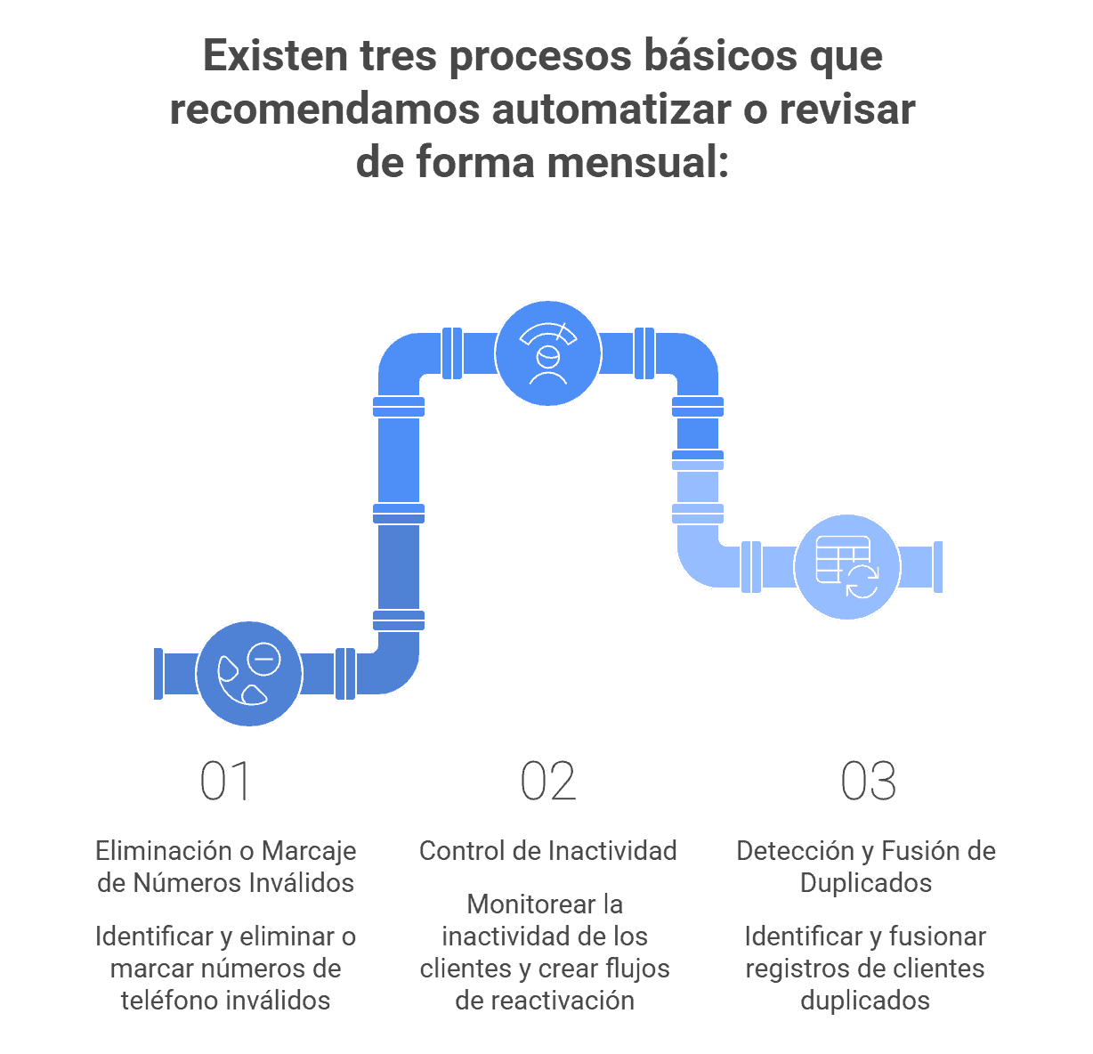La limpieza periódica es clave para proteger la reputación del canal y optimizar el presupuesto. En SMS se paga por mensaje enviado, no por mensaje entregado o leído. Cada número inválido es dinero perdido.